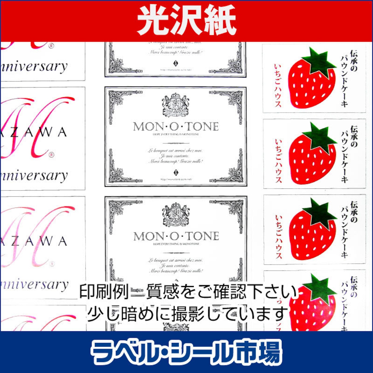 表面はピカピカ、光沢タイプで高級感のあるラベルシール用紙です。